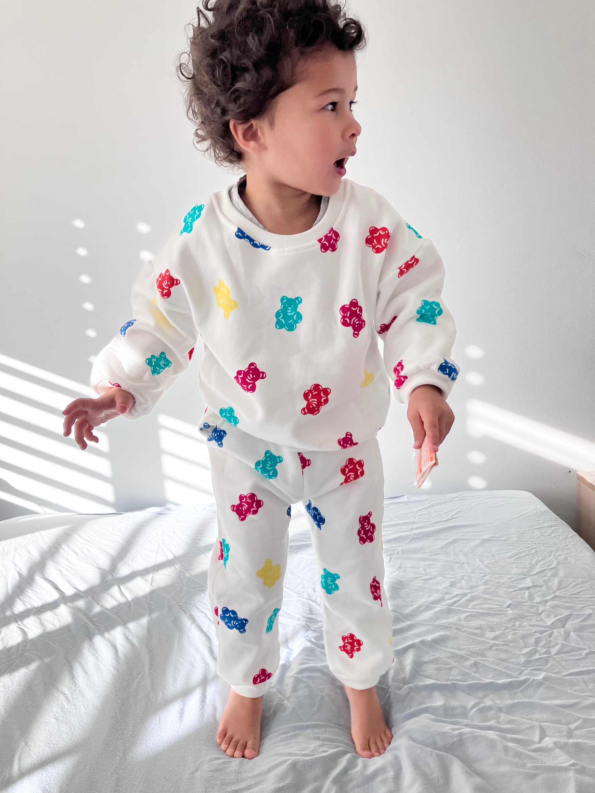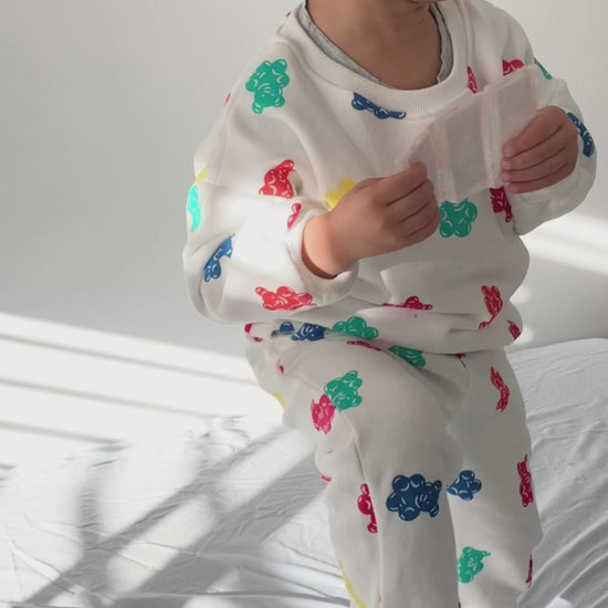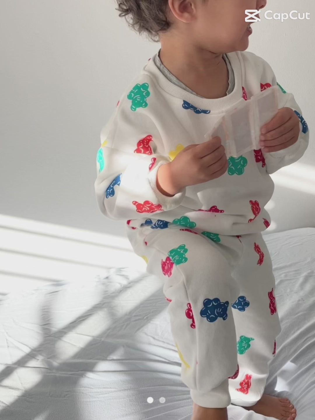 This beautiful set is 95% cotton and 5% spandex.Its Perfect for the Munchkins who can’t sit still !